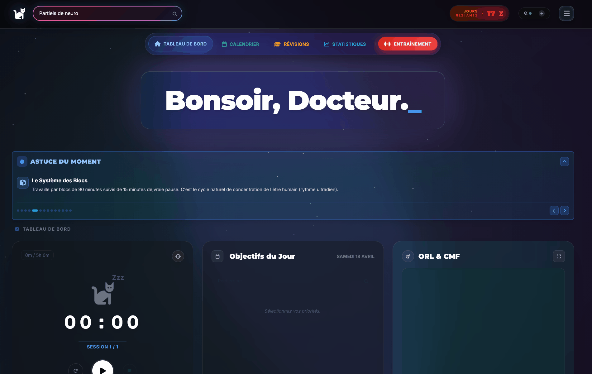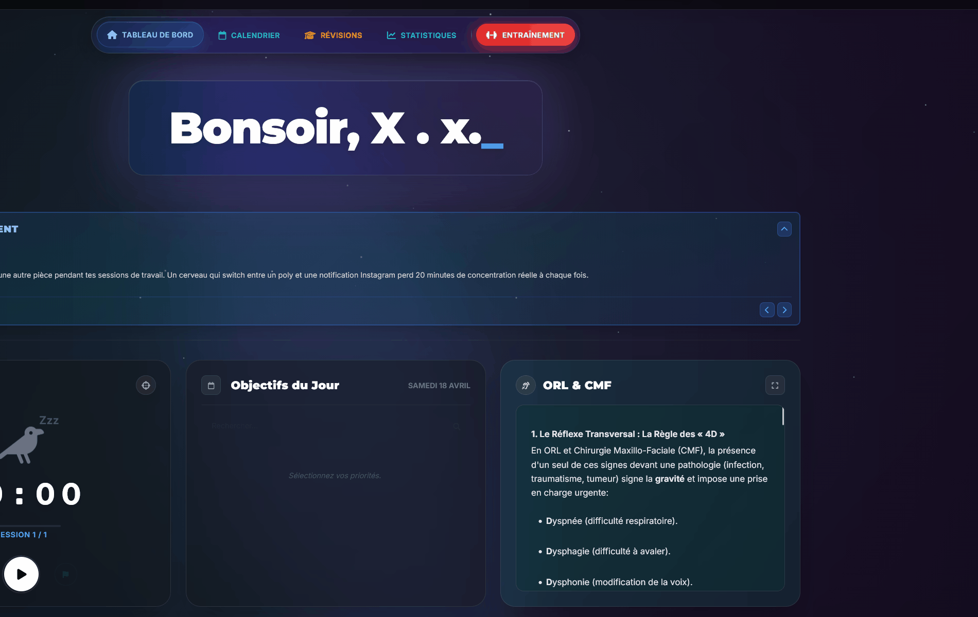 Lance le timer, interroge l'IA sur tes cours, complète tes dailys et track ta progression jusqu'au concours.